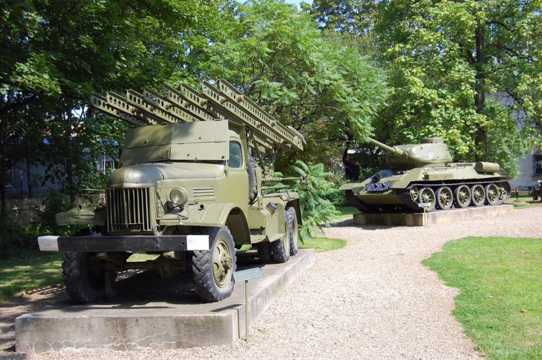Skonstruowana tuż przed wybuchem II wojny światowej została użyta bojowo po raz pierwszy w lipcu 1941 roku. Szybko zyskała uznanie jako skuteczny środek walki. Składa się z 16 prowadnic połączonych parami, z których wystrzeliwuje się pociski rakietowe M-13 o kalibrze 132 mm i ciężarze 42,5 kg. Wyrzutnie montowano na podwoziu samochodu ciężarowego Studebaker lub ZIS-6 (ta druga wersja znajduje się w naszym Muzeum).